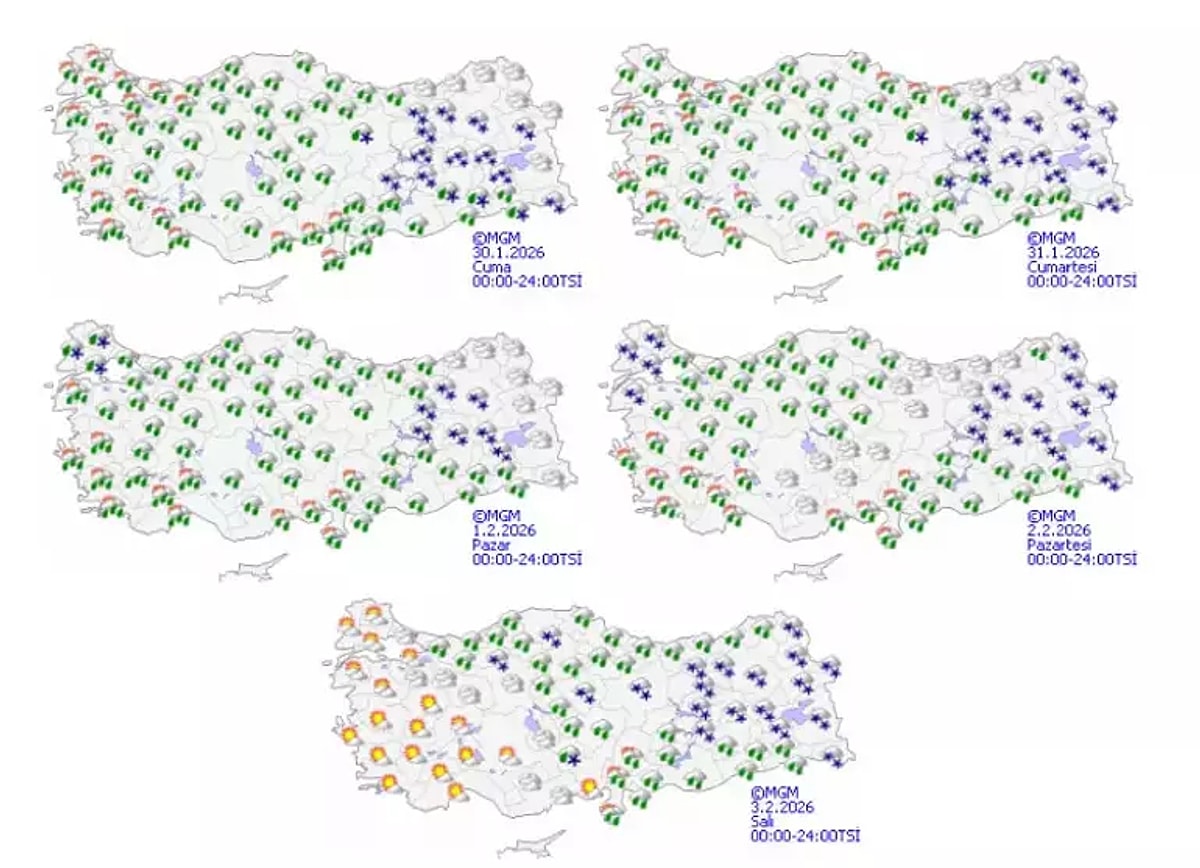 Meteoroloji Genel Müdürlüğü tarafından yapılan son değerlendirmelere göre; 30 Ocak Cuma günü Marmara, Ege, Akdeniz, Batı Karadeniz ve İç Anadolu’nun batısında kuvvetli rüzgar (40-80 km/saat) ve sağanak yağış bekleniyor. Doğu Anadolu’nun güneydoğusunda ise kar yağışı etkili olacak. Yetkililer, iç ve doğu bölgelerde buzlanma, don olayları ve Doğu Karadeniz’in iç kesimlerinde çığ tehlikesine karşı tedbirli olunması gerektiğini vurguladı.